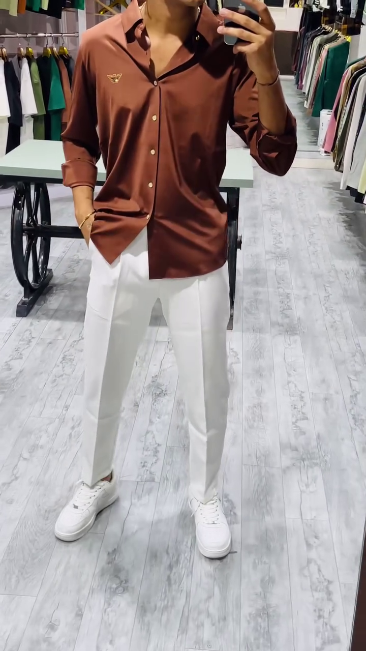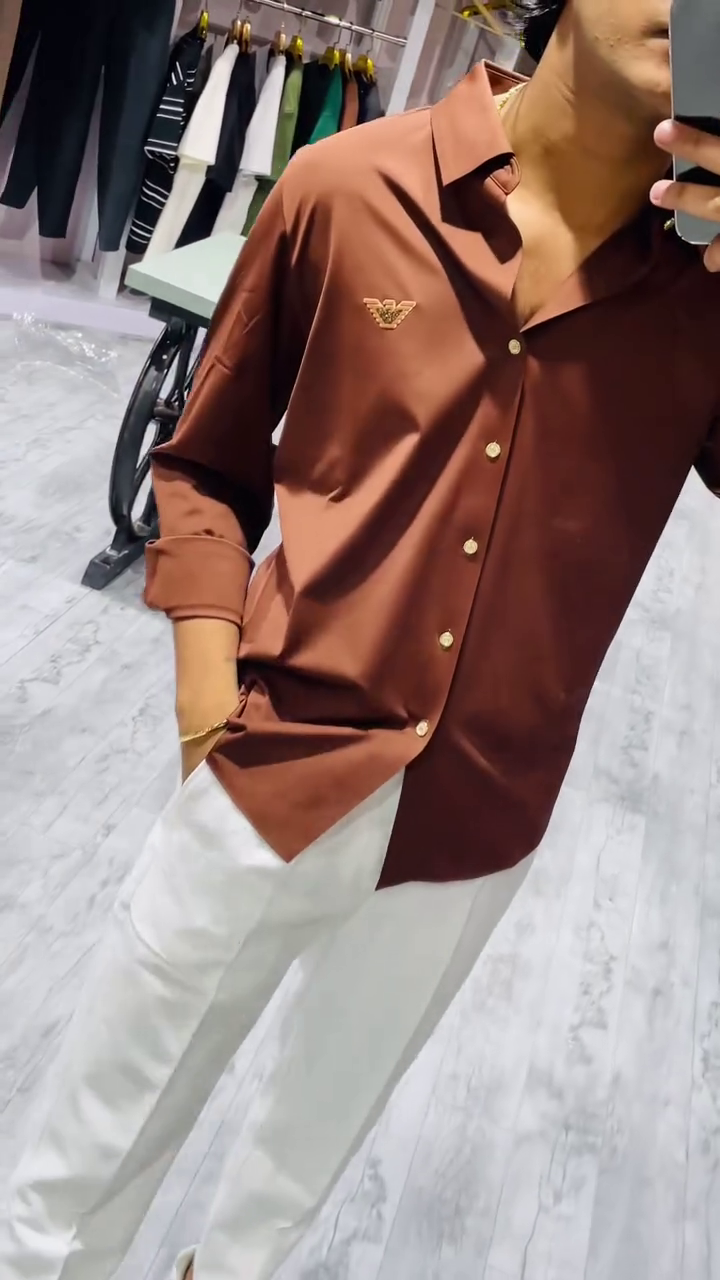 Brown solid opaque Casual shirt ,has a spread collar, button placket, long regular sleeves, straight hem