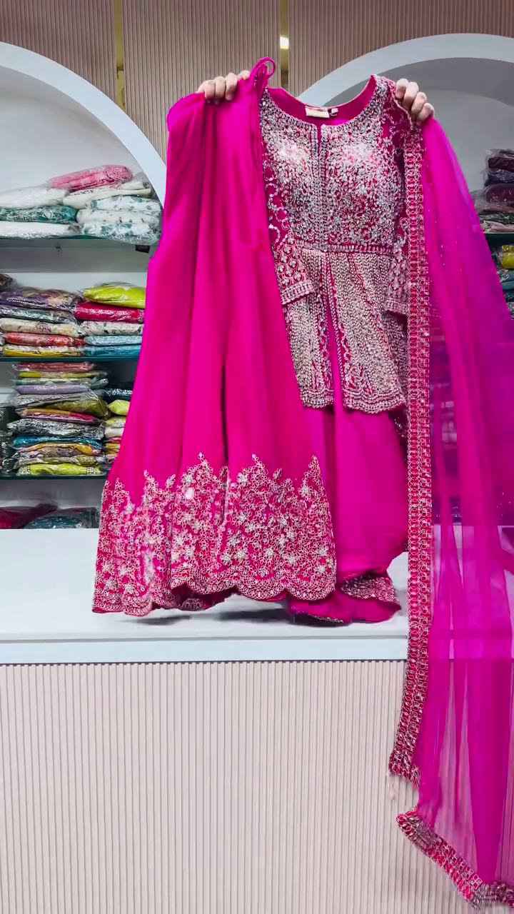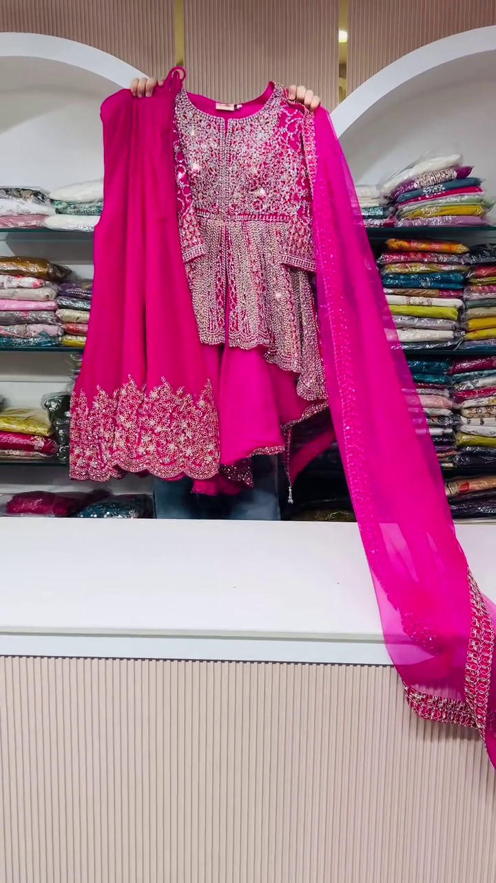 The Magenta Lehenga with Zari & Mirror Work is a masterpiece of heritage and grandeur. Crafted in a striking magenta hue, this lehenga radiates brilliance through its meticulously woven zari and hand-placed mirror embellishments. The shimmering interplay of mirrors with golden zari embroidery creates a celestial glow, making it perfect for brides who wish to embrace tradition with a touch of contemporary sparkle. The name Noorvi, meaning “light and brightness,” captures the lehenga’s essence—soulful, regal, and luminous. Ideal for weddings, grand receptions, or festive soirées, this lehenga is a statement of grace and timeless bridal opulence.