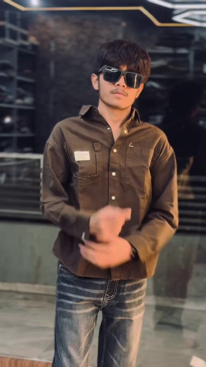 Brown solid opaque casual Shacket, has a spread collar, button placket, 1 patch 1 flap pocket, long regular sleeves, curved hem