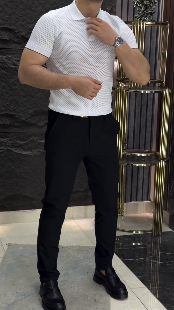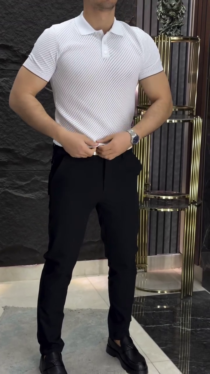 Men Self Design Polo Collar Cotton Slim Fit T-shirt