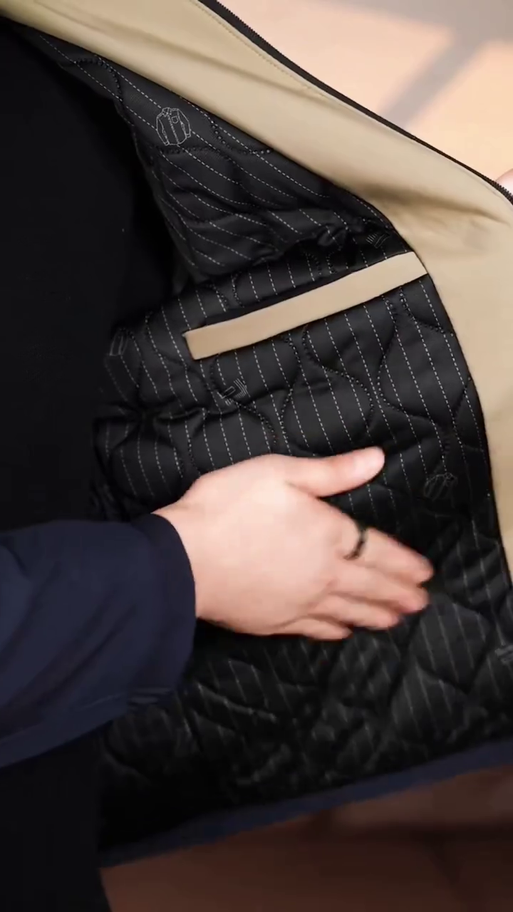 • Contrast Trim: Notice the faint, likely brown or tan piping/trim along the zipper and collar edge, adding a subtle touch of premium contrast.