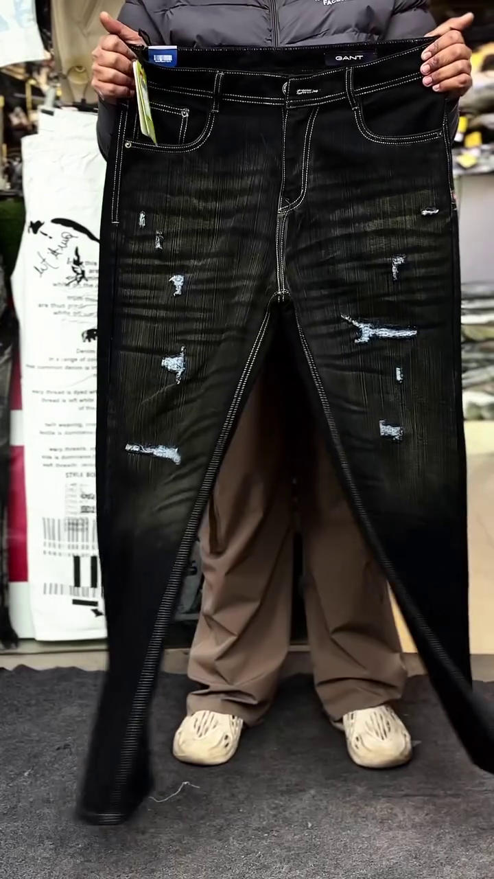 Distressed Style: These stylish men’s jeans feature a trendy distressed look with rips and frays for an edgy, casual aesthetic.