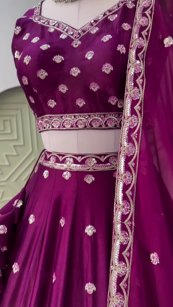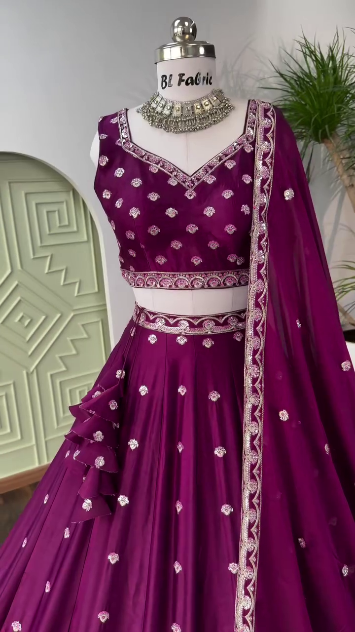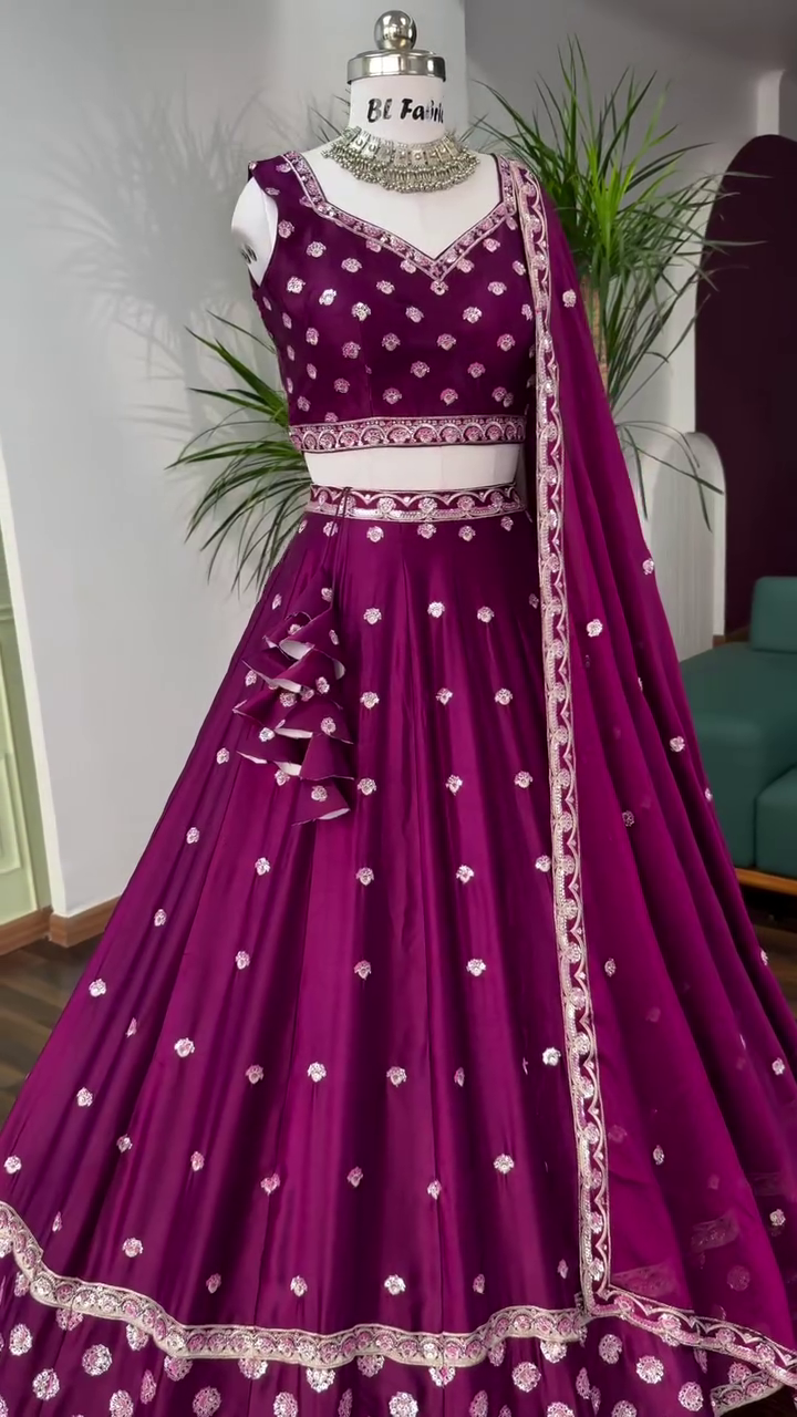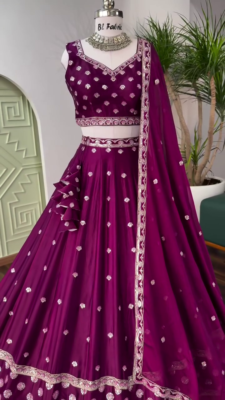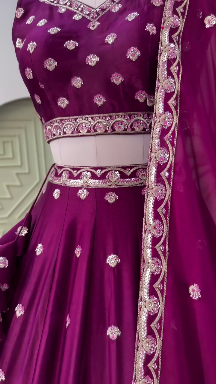 Wine Purple color Designer Embroidery work Lehenga choli